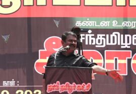 தஞ்சாவூரில் உற்சாக வரவேற்பு | பாட்டன் இராஜராஜசோழனுக்கு மாலை அணிவித்து புலிக்கொடியேற்றிய சீமான்