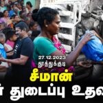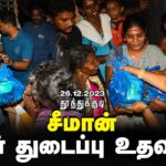 மழை வெள்ளத்தால் பாதிக்கப்பட்ட மக்களுக்கு 26.12.2023 அன்று நாம் தமிழர் கட்சி தலைமை ஒருங்கிணைப்பாளர் செந்தமிழன் சீமான் அவர்கள் நிவாரண பொருட்களை வழங்கினார்.
